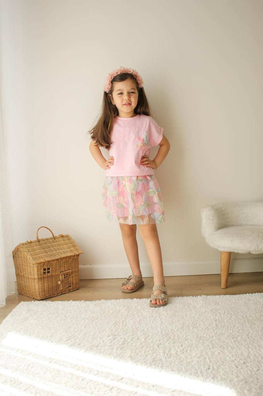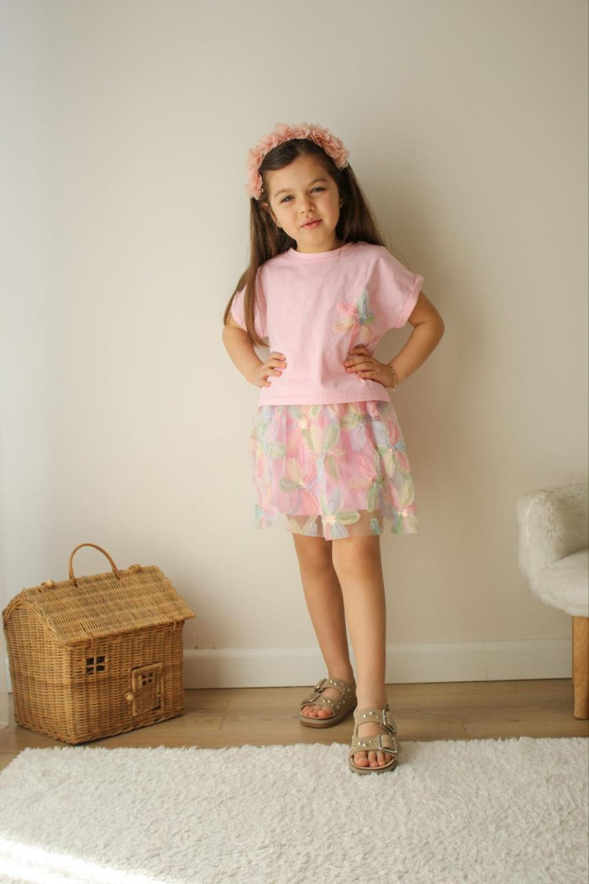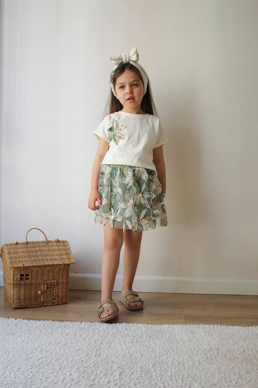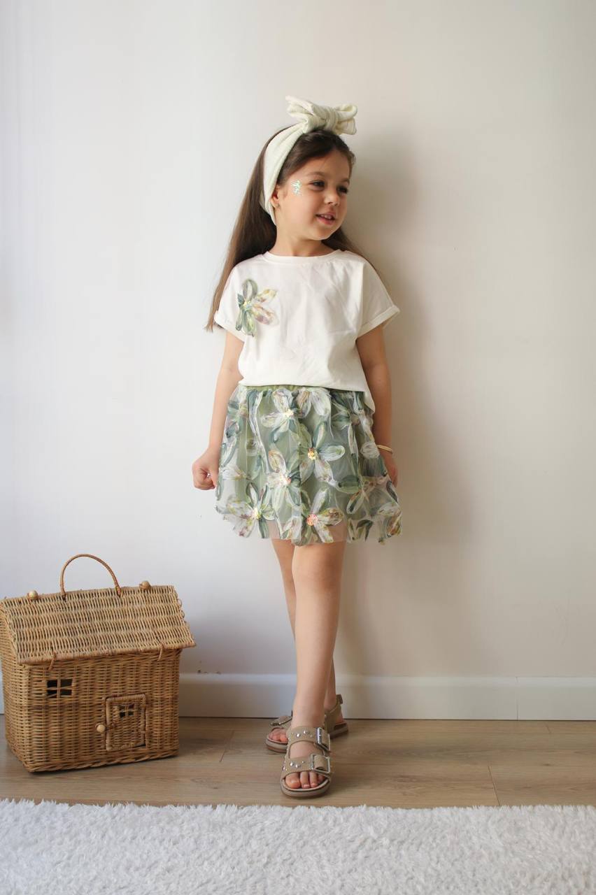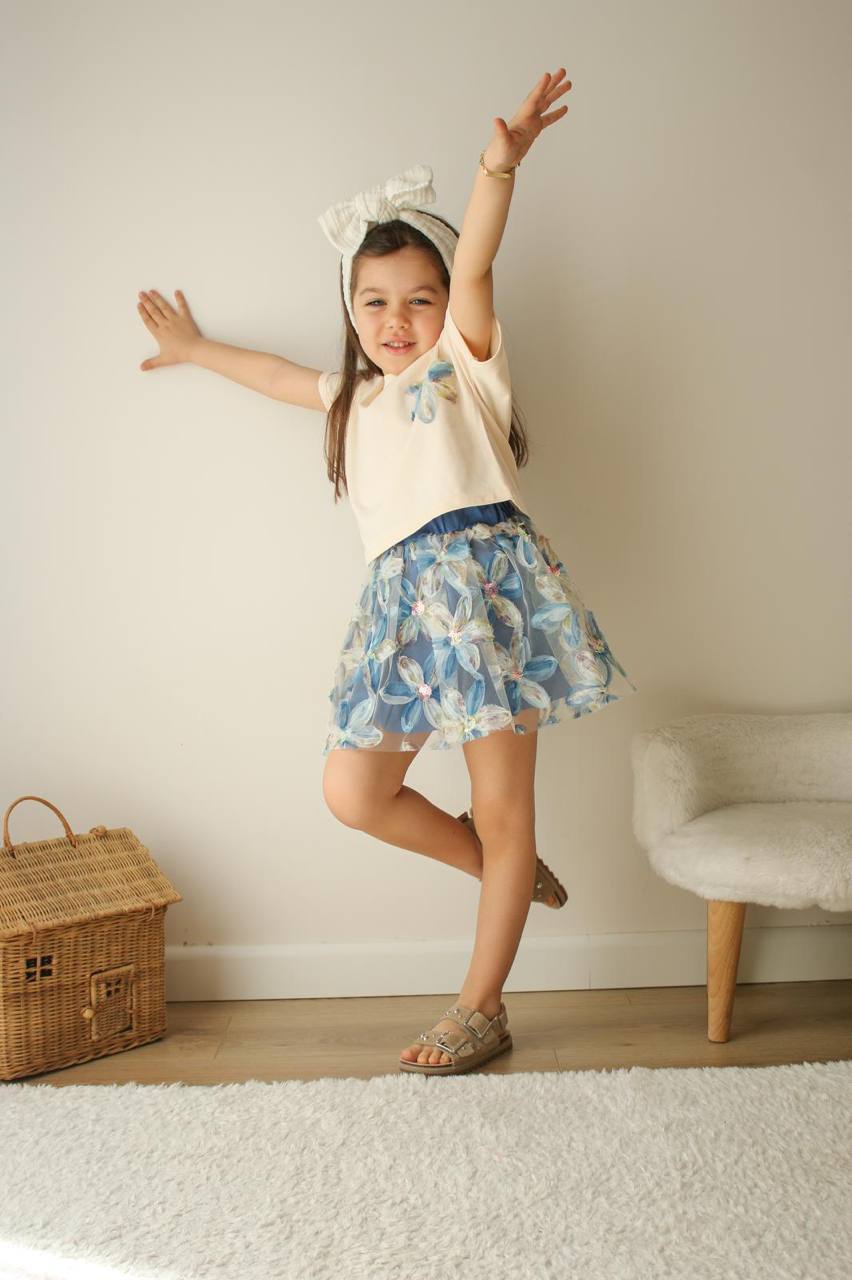 إطلالة أنثوية حالمة – تنورة مزينة بسحر الأزهار