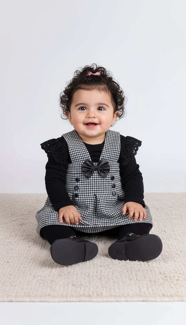 إطلالة مثالية لصغيرتك مع تصميم عصري ومريح، مناسب للنزهات والمناسبات الرسمية. مصنوع من قماش ناعم لضمان الراحة والأناقة. 💖✨