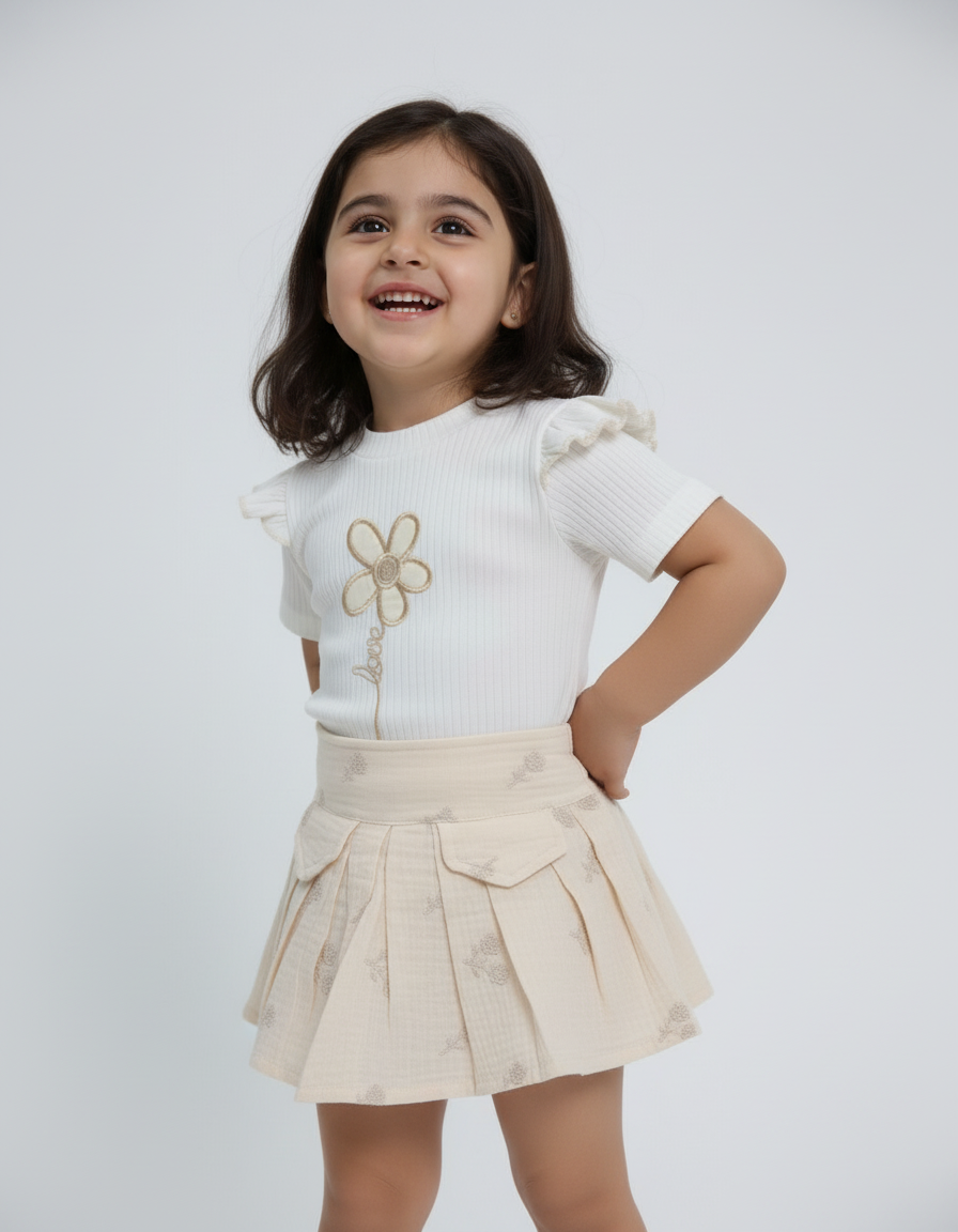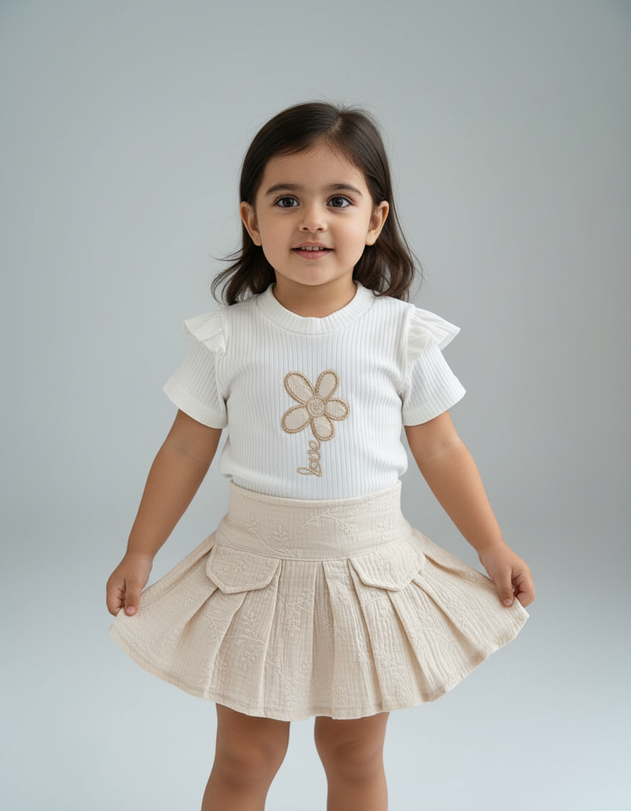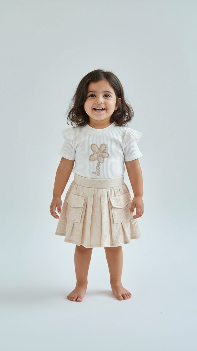 إطلالة مثالية لصغيرتك مع تصميم عصري ومريح، مناسب للنزهات والمناسبات اليومية. مصنوع من قماش ناعم لضمان الراحة والأناقة. 💖✨
