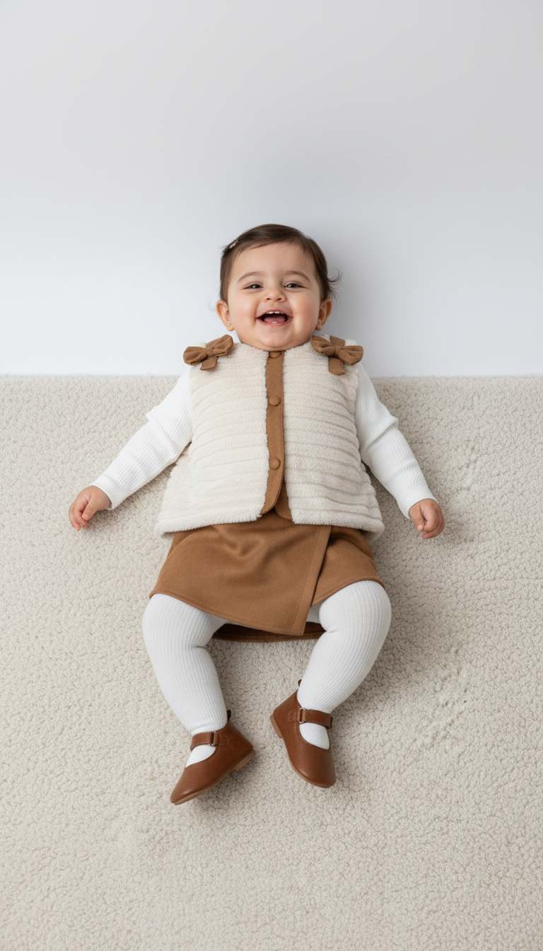 إطلالة مثالية لصغيرتك مع تصميم عصري ومريح، مناسب للنزهات والمناسبات الرسمية. مصنوع من قماش ناعم لضمان الراحة والأناقة. 💖✨
