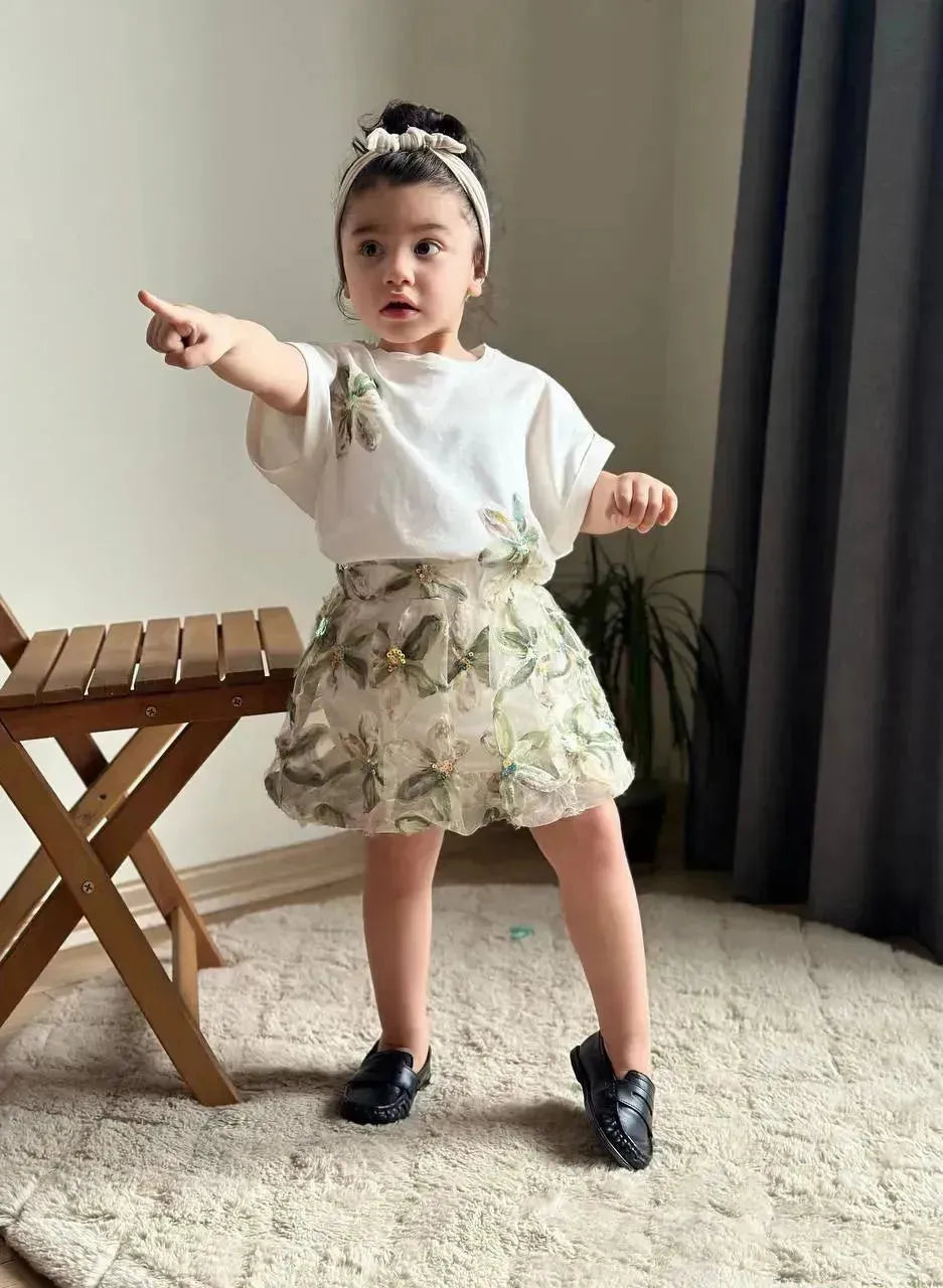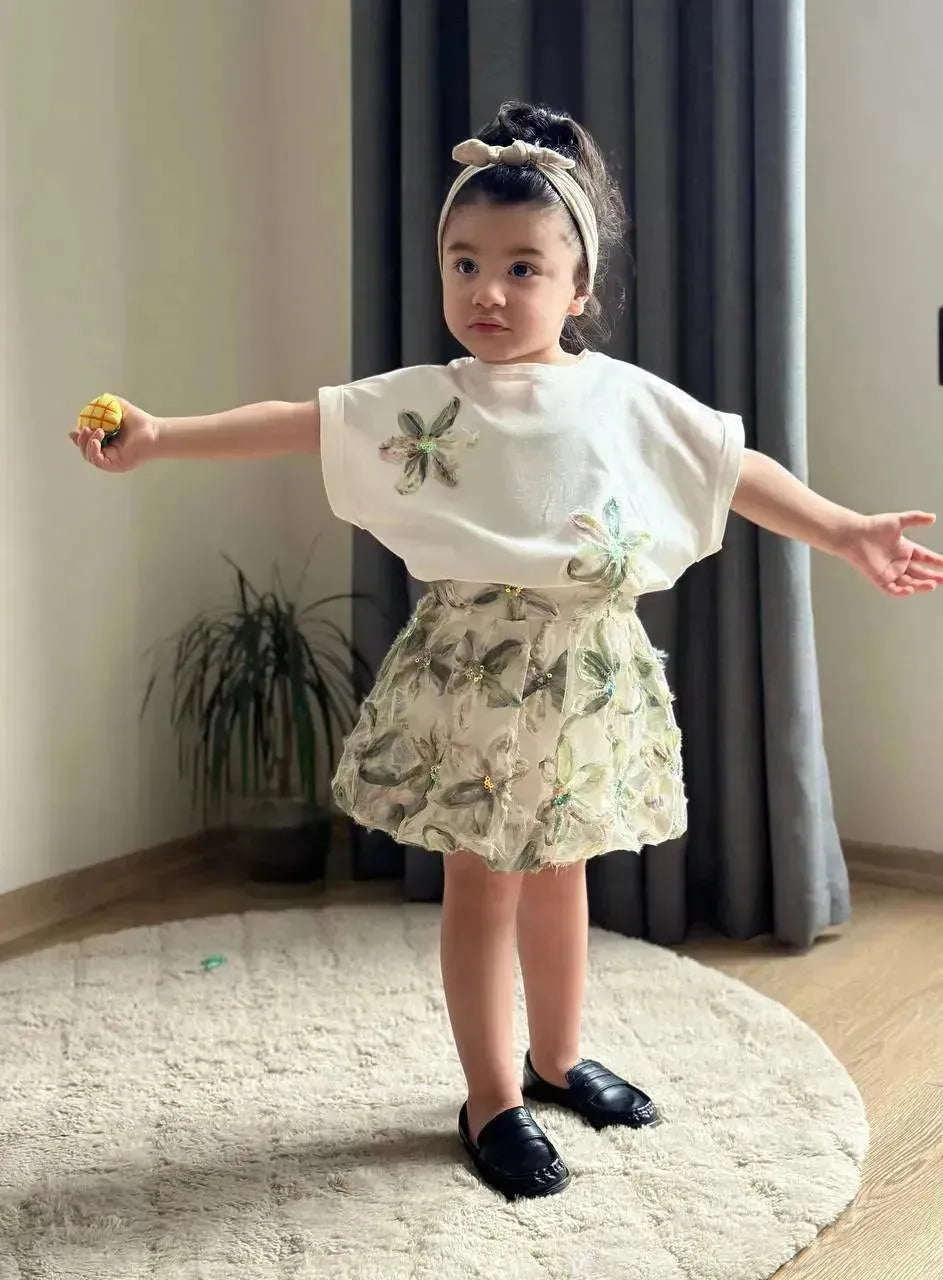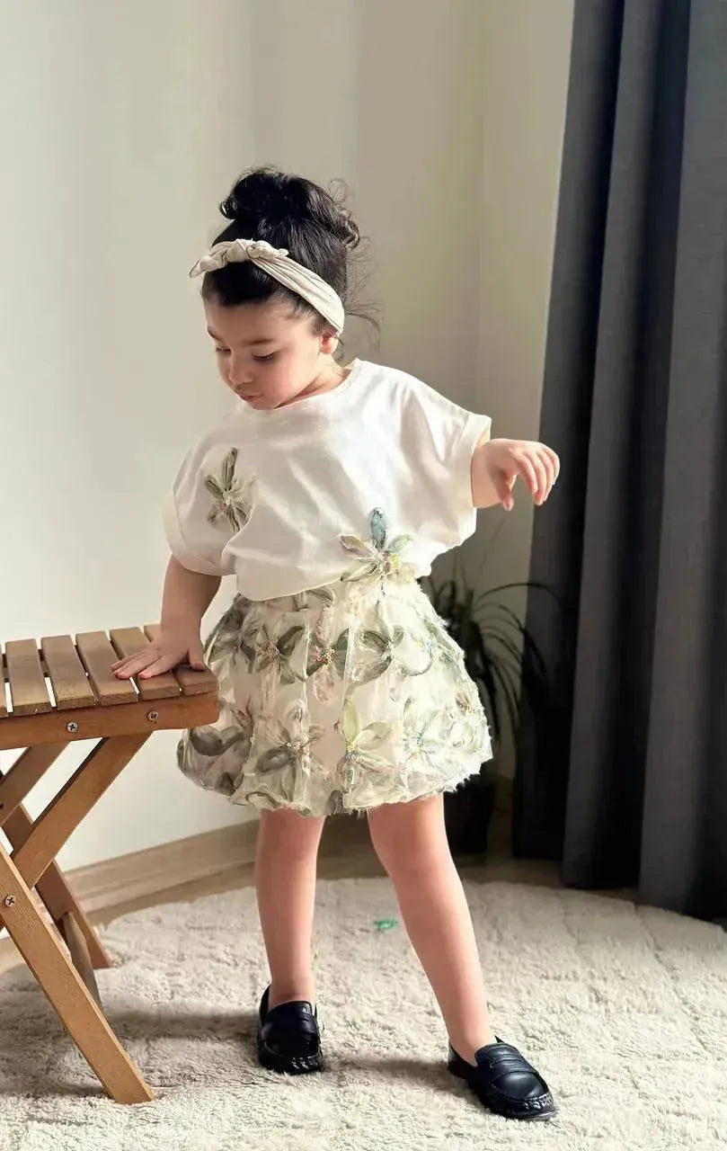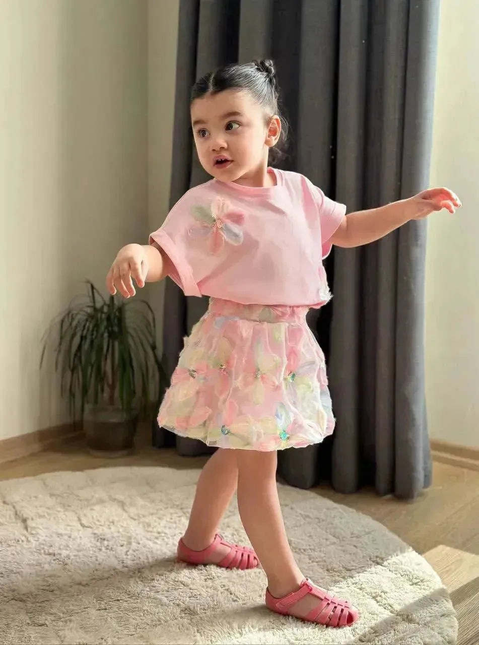 طقم تنورة مزين بزهور للبنات – أناقة ناعمة