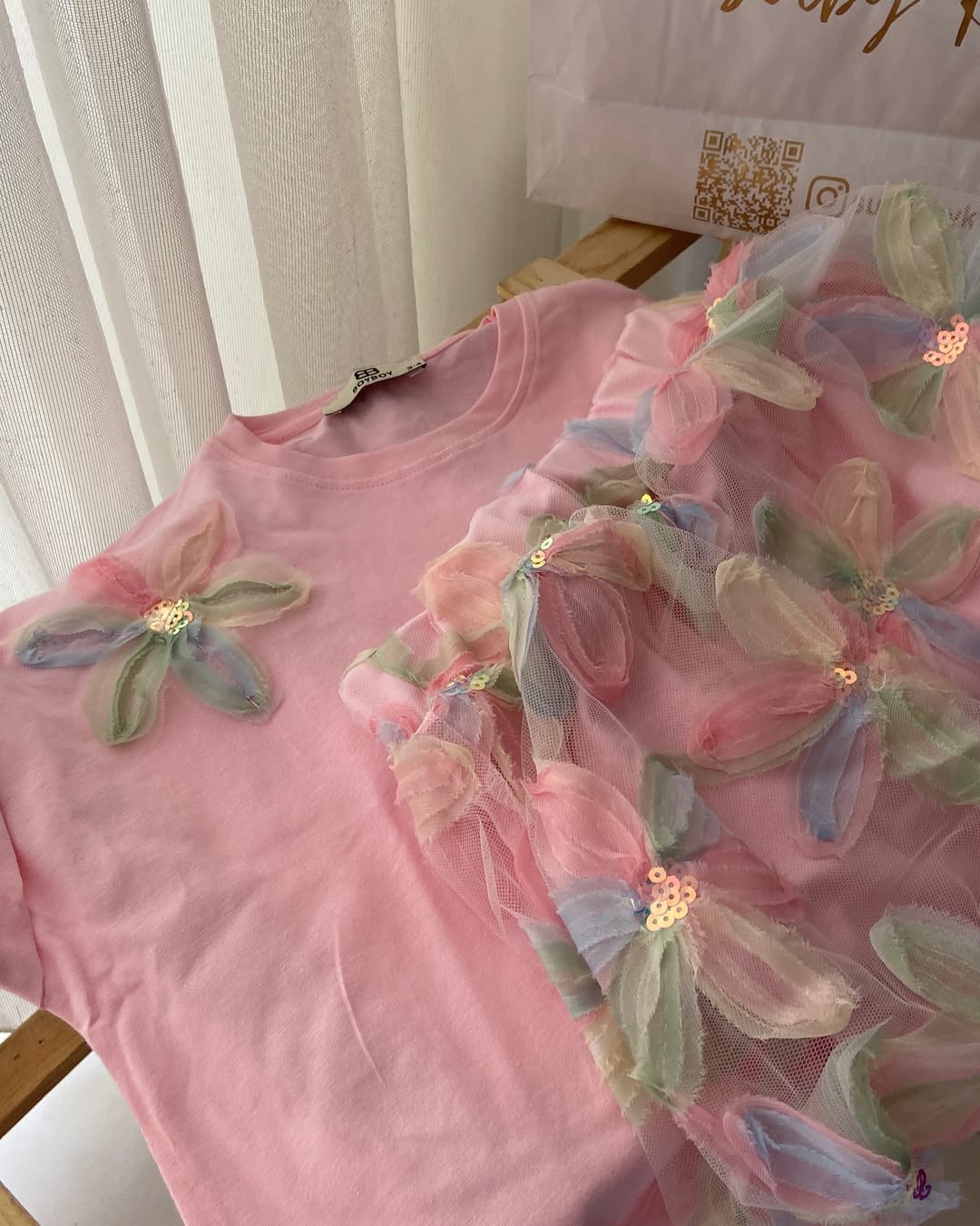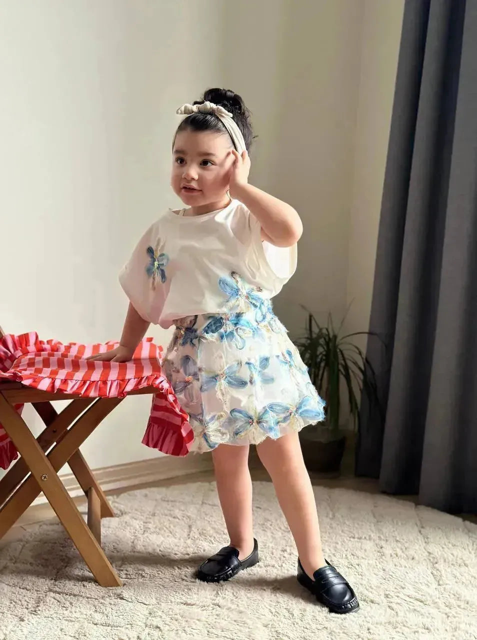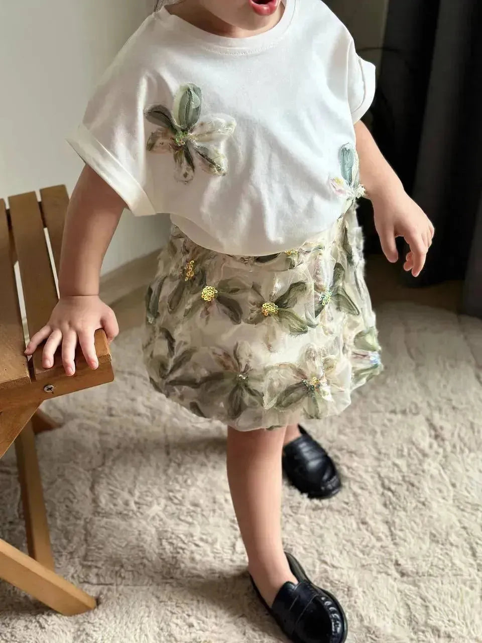طقم تنورة مزين بزهور للبنات – أناقة ناعمة