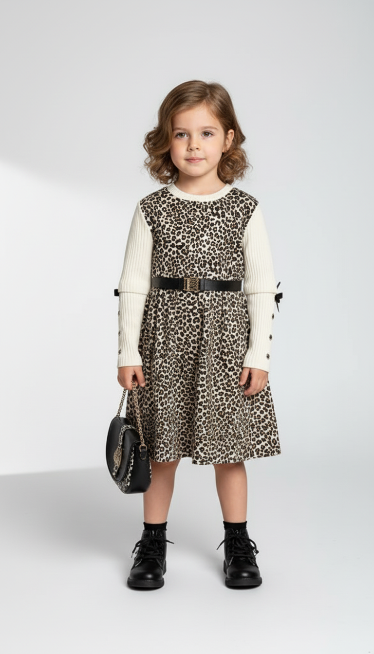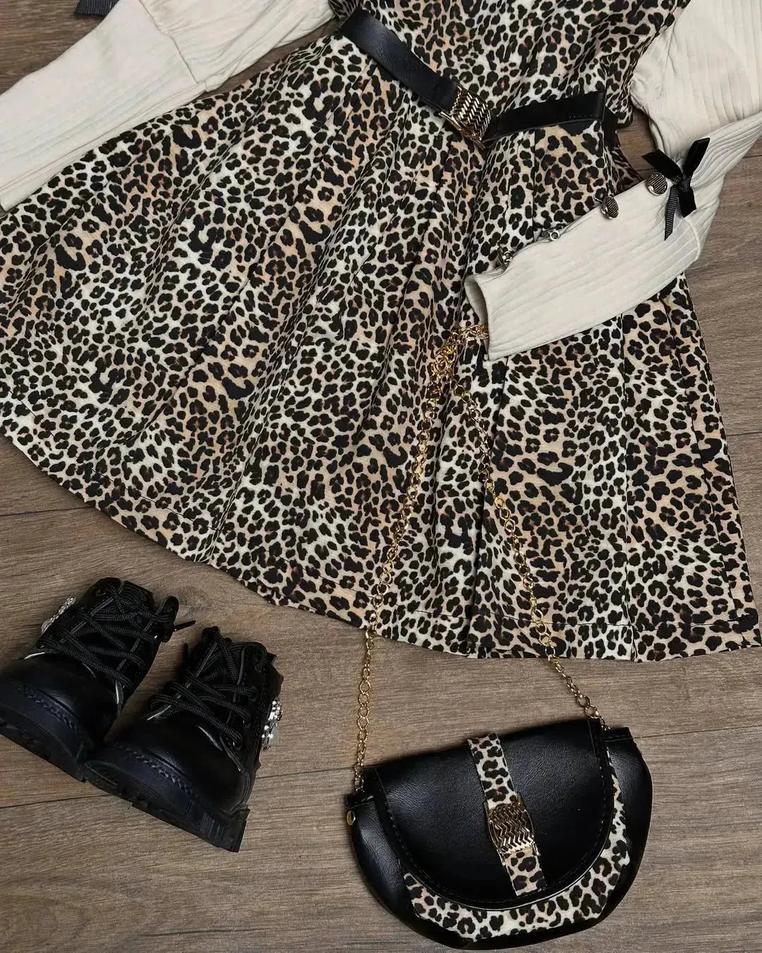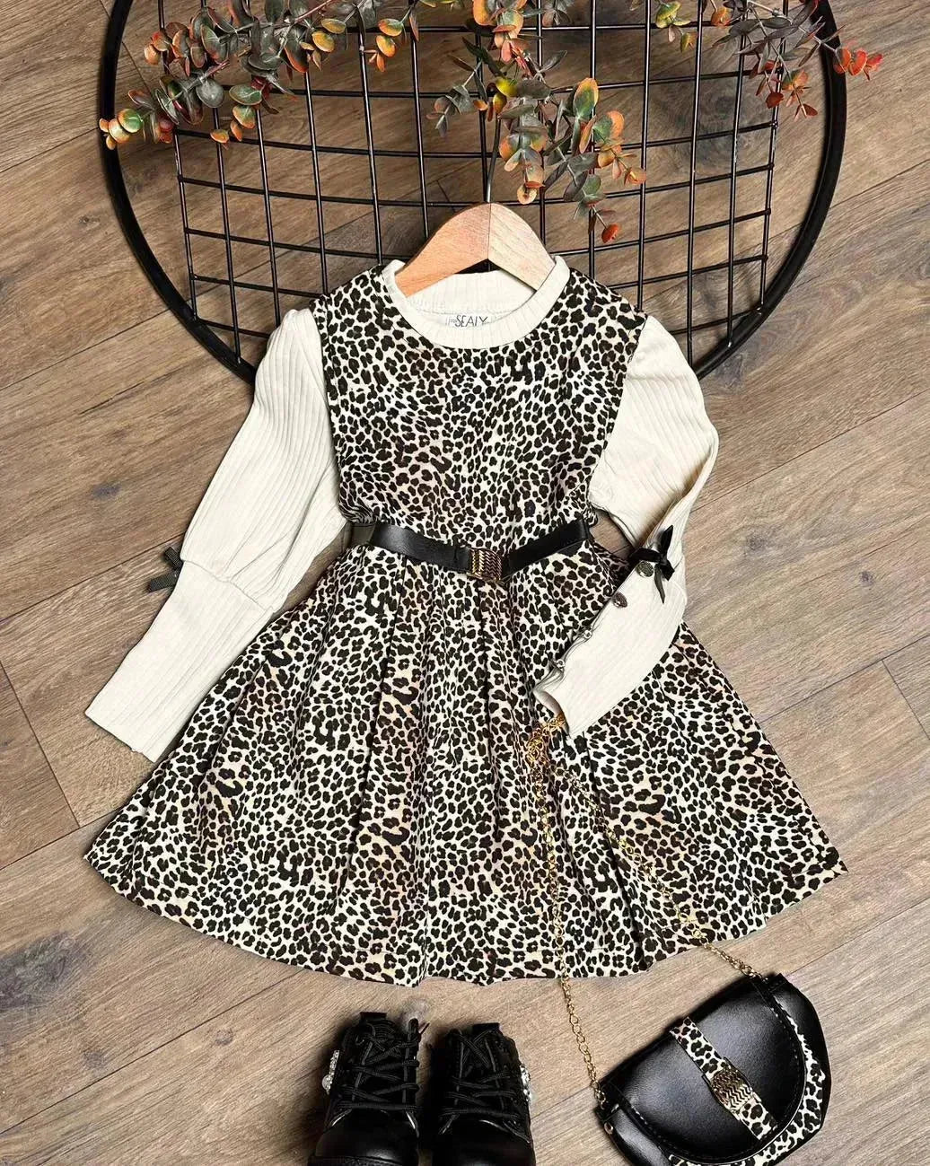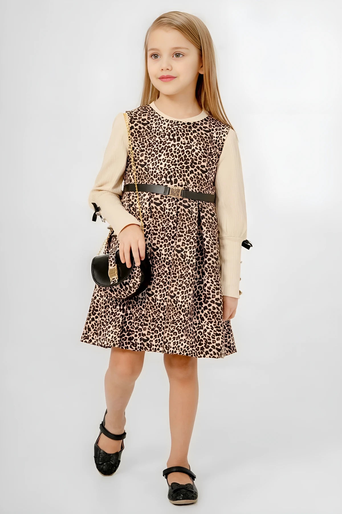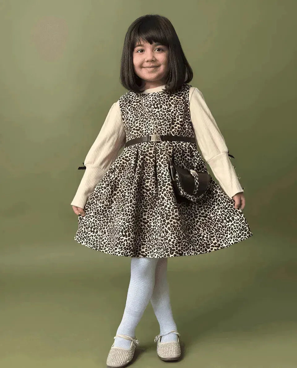 فستان بناتي فاخر بطبعة الفهد مع حقيبة عصرية