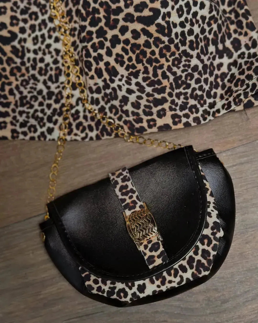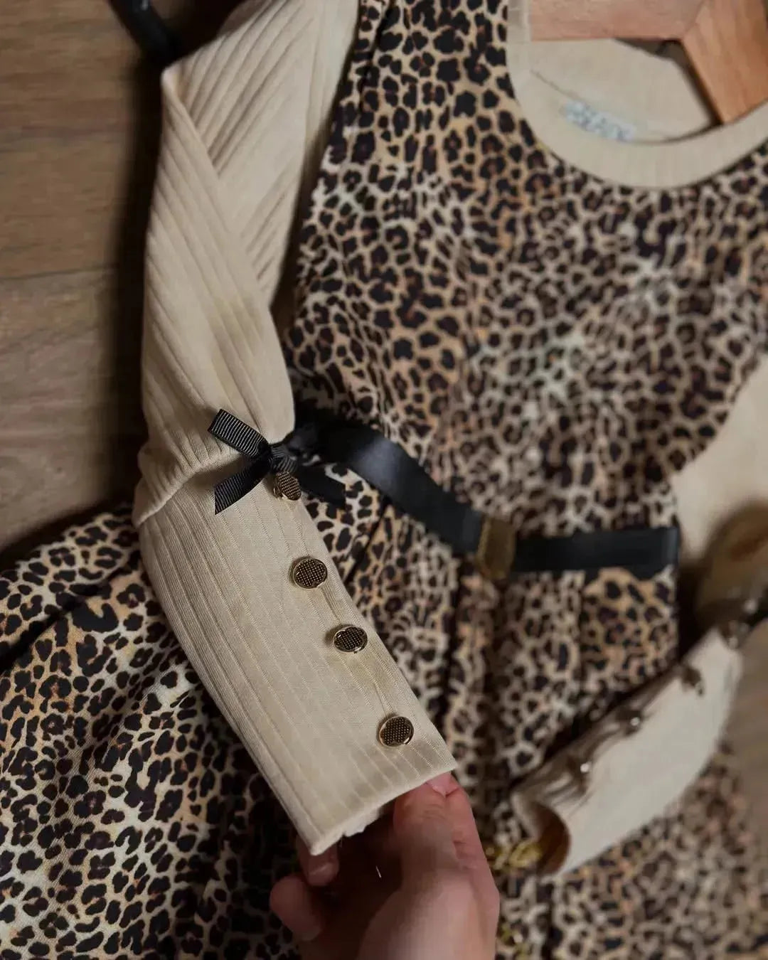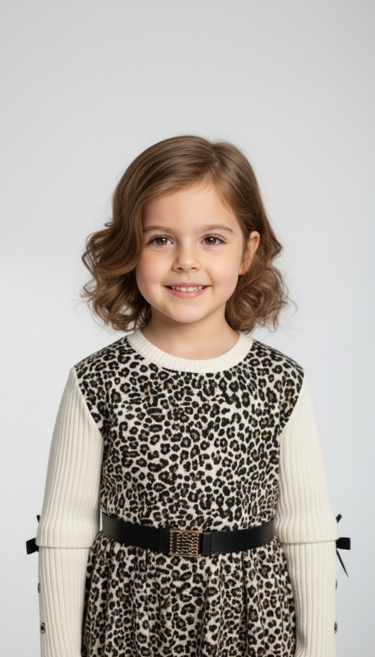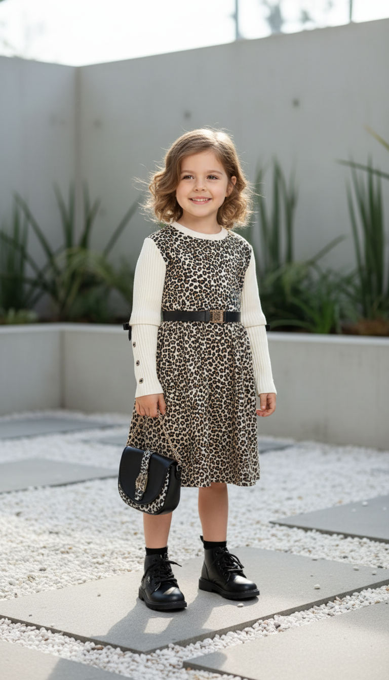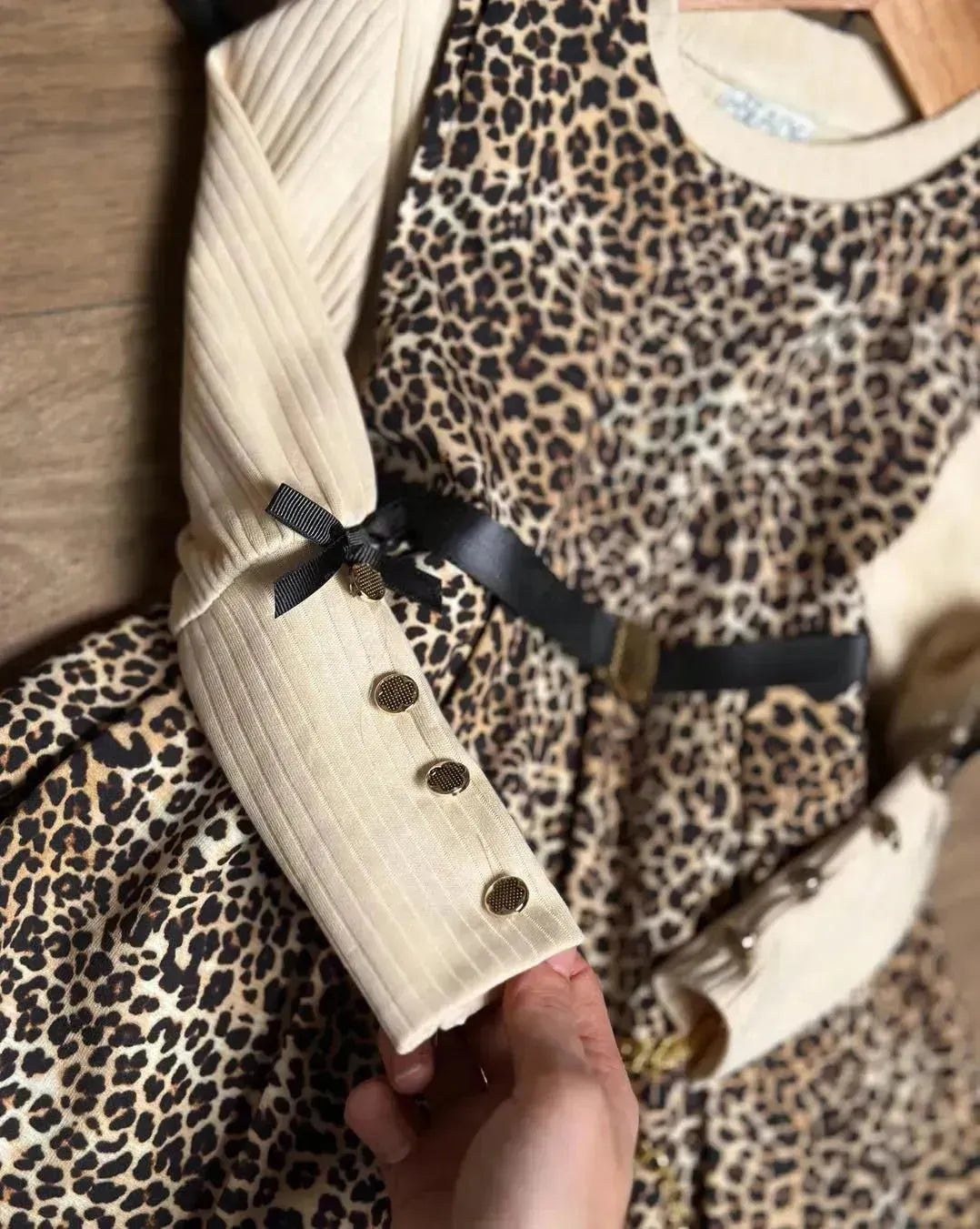 فستان بناتي فاخر بطبعة الفهد مع حقيبة عصرية