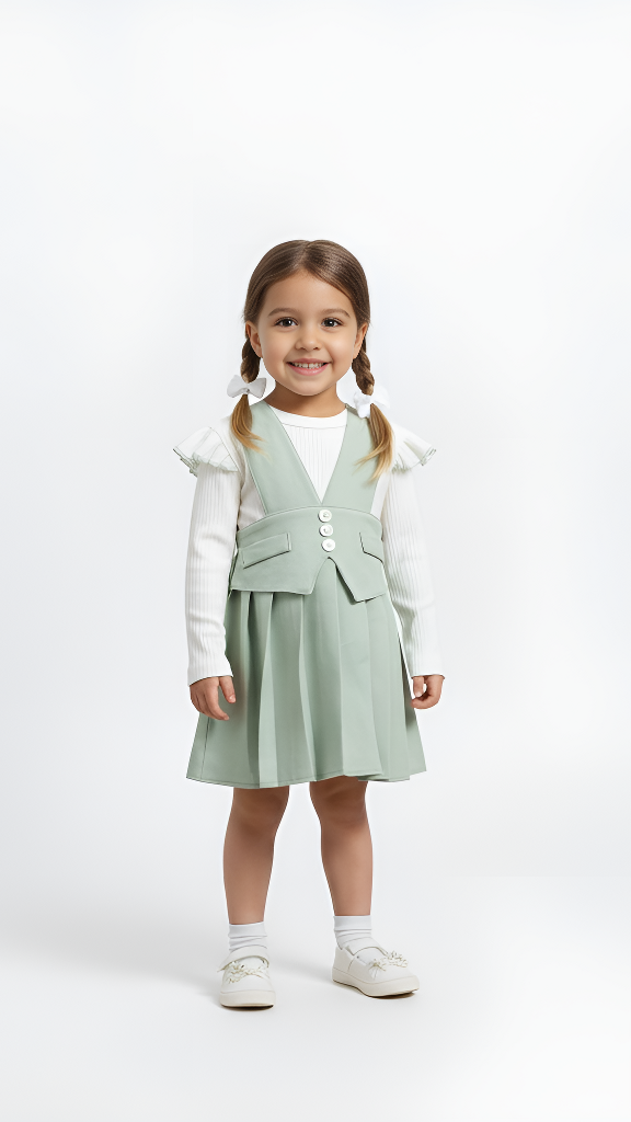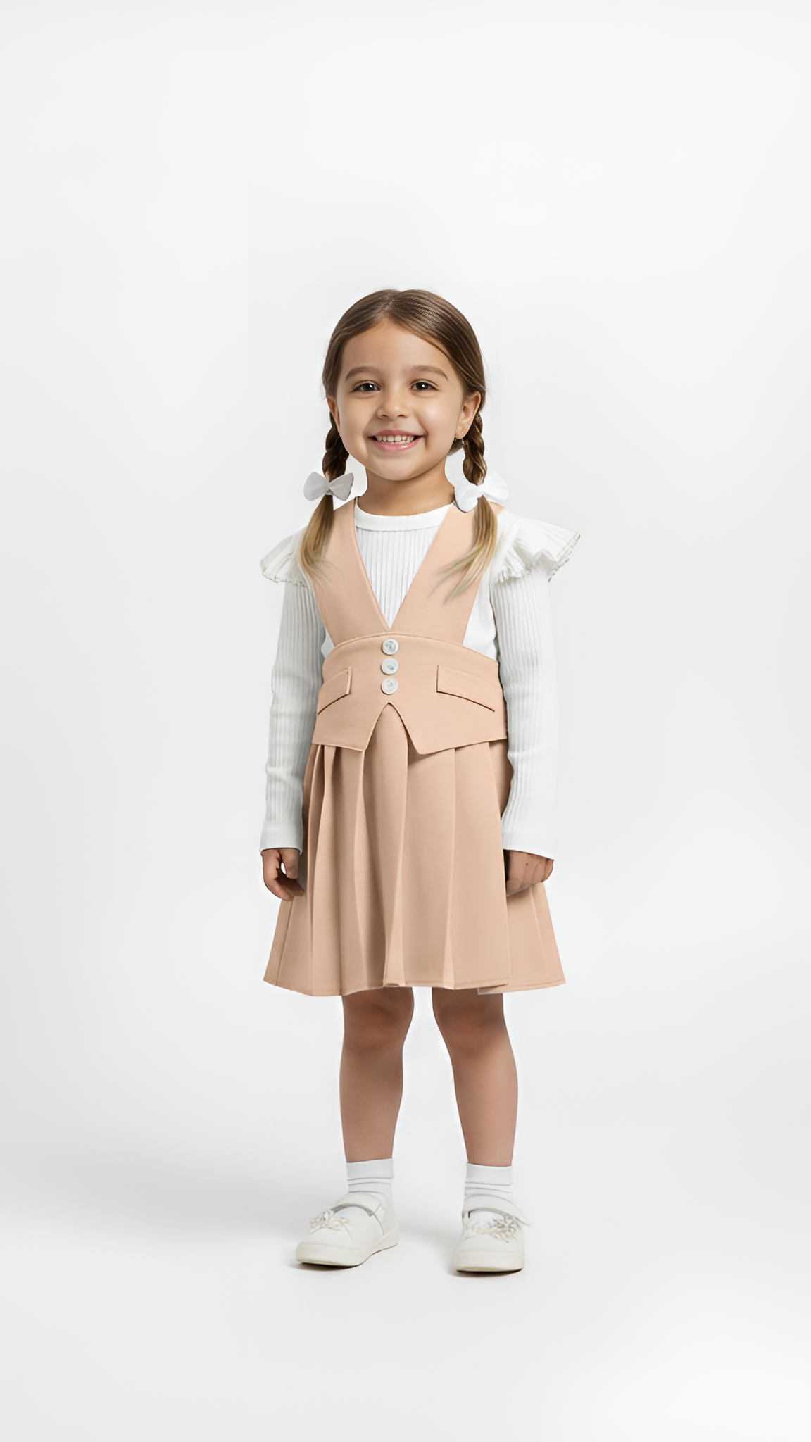 إطلالة مثالية لصغيرتك مع تصميم عصري ومريح، مناسب للنزهات والمناسبات اليومية. مصنوع من قماش ناعم لضمان الراحة والأناقة. 💖✨